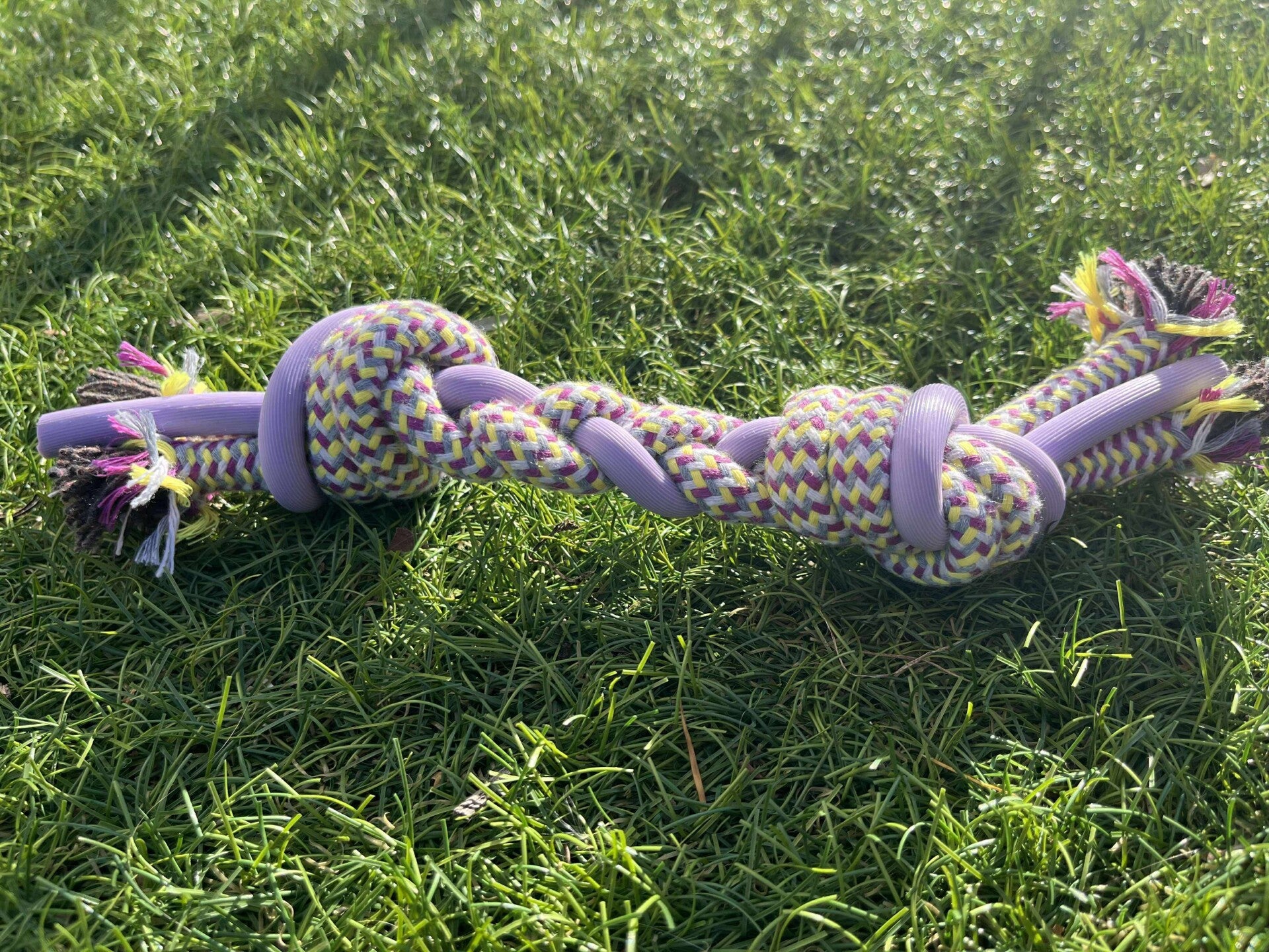 een stevig touw speeltje met touw en ruber voor de exstra stevig heid